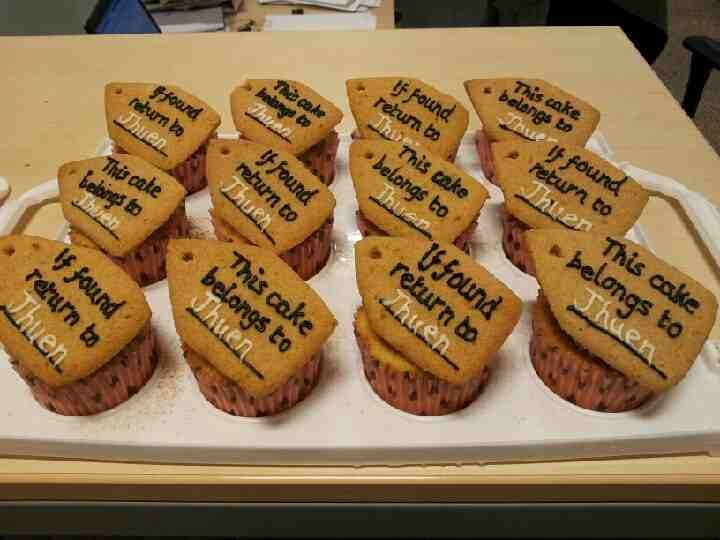 Jhuen left our team towards the end of August and since she’s tiny but eats more than most people I know, I made some tiramisu cupcakes with labels saying “belonging to Jhuen” – I also made the cookie monster cupcakes at the top of this post for her!