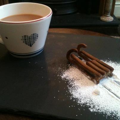 On Thursday night last week there was an amber warning in place for heavy snowfall overnight and all day Friday. It was also bitterly cold. Despite turning the heating on and having the fire on as soon as I got home, it still felt cold so I decided that in order to warm the house up a bit more, the best option was to turn the oven on. And if the oven is on then it’s rude not to bake something. So I decided to try out a new recipe for gingerbread biscuits – they keep for ages and they’re perfect dunked into tea. I cut some of it up to build some sledges and then the rest I used to make mittens.