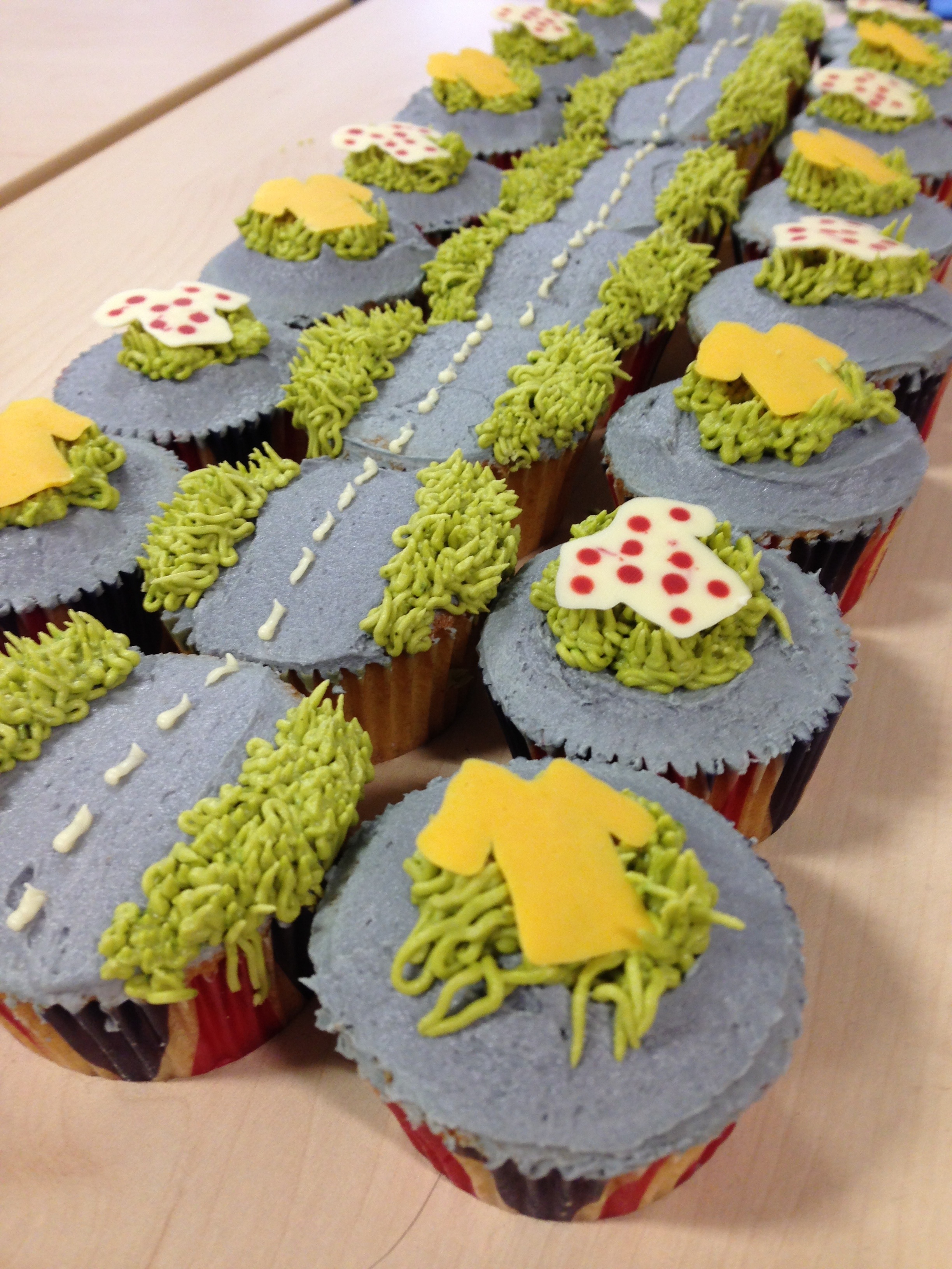My Uncle Pe-pe is currently cycling from John O’Groats to Land’s End with his brother-in-law Tim. He’s not going at quite the same speed as the Tour de France but then he’s not a cyclist, they’re not having any rest days and they don’t have a support crew following them so they are cycling with all their kit and camping, so he’s doing an amazing job! Rather than just donating, I decided to use a tiny amount of the money I was going to donate (less than £5) to make some cakes to raise a bit more money… and that’s when I came up with these cupcakes.