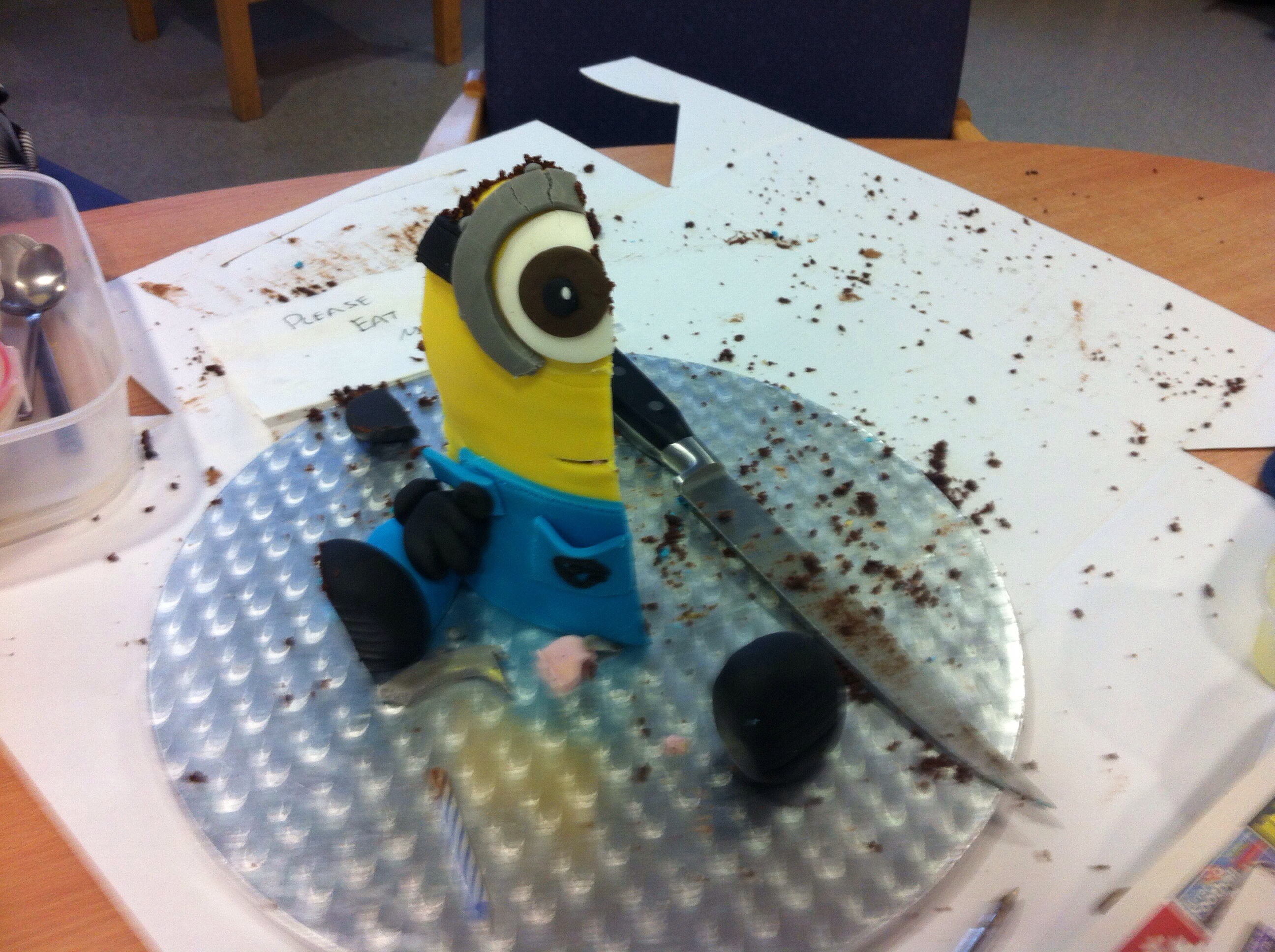 In between making wedding cakes it was Tom’s birthday. He’s been away for the last few years on his birthday so I haven’t been able to make him a birthday cake. Therefore, this year, I wanted to make him a cake which would make up for the last few years. Not much thinking was required – he came back from a recent trip to Universal Studios with a minion water bottle, a minion mug and a set of minion pyjamas for me… so a minion cake it was!