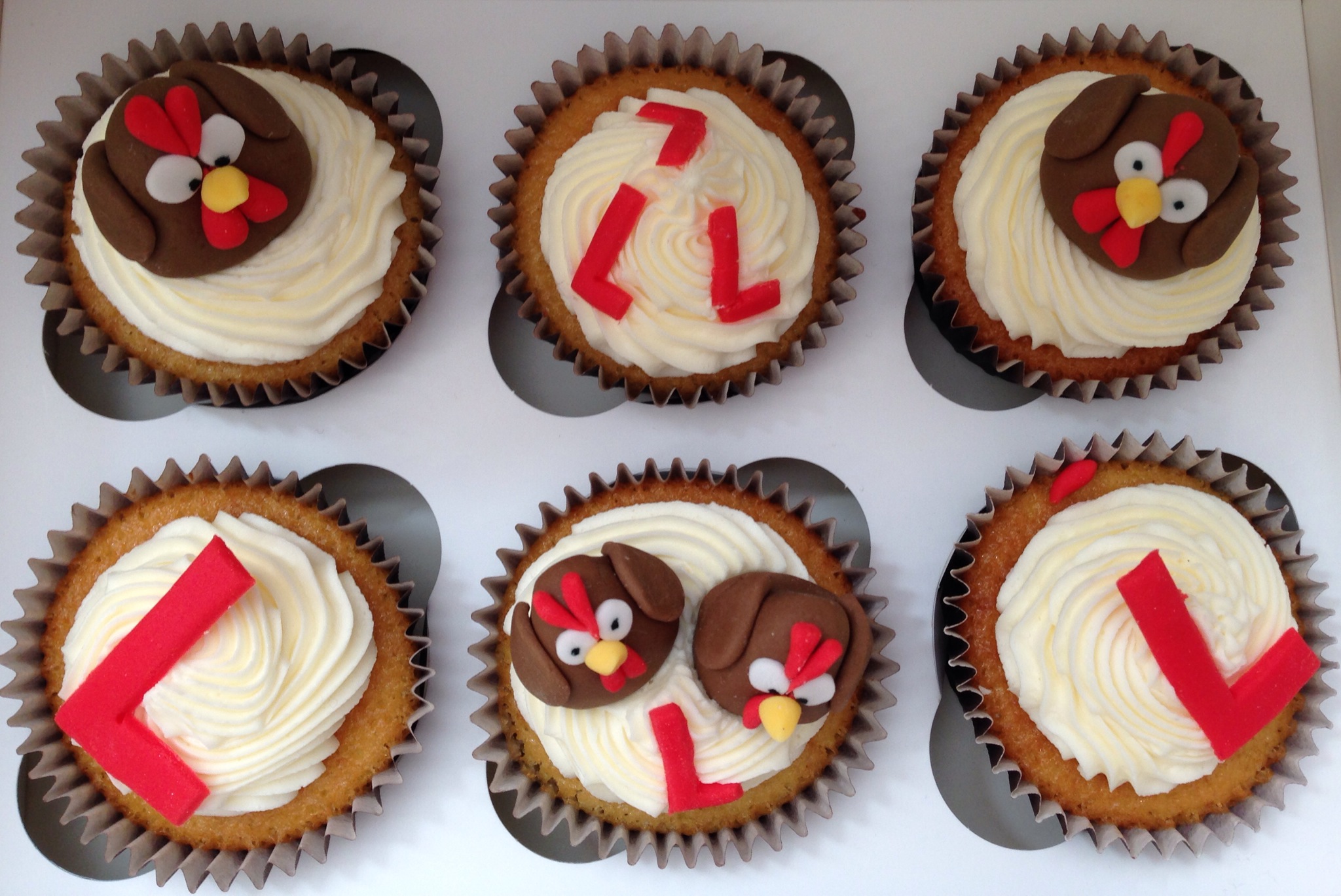 Kiri mentioned that she had a silly chicken costume for the bride-to-be to wear at some point during the weekend so I nearly made some chick cupcakes like I made at Easter. But given the time restraints I decided it was best to make the decorations while the cupcakes were baking/cooling. These hens were the quickest hen do related decorations I could think of – the photo above shows the steps for making them. I made 2 different sized hens but I made them all in the same way. The only thing that’s not obvious from the photo is that you need to stick everything on using a paintbrush dipped in water. And when it comes to sticking the red bits and the beaks on, stick all the red bits on first and do the beaks last.
