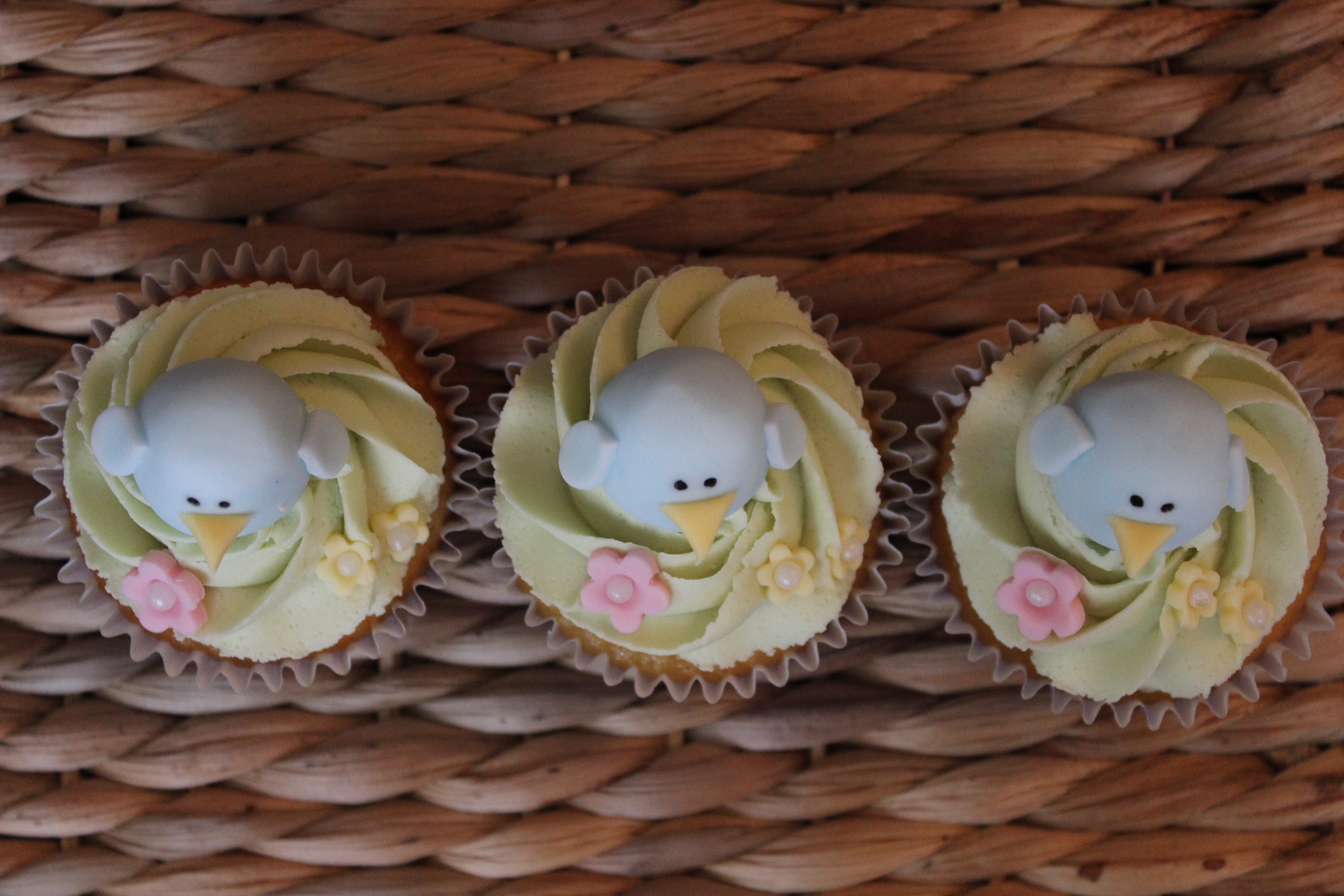 Last weekend it definitely felt like spring had arrived. We’d also had some lovely sunny days at the start of the week so I couldn’t resist making some spring cupcakes but after I made these on Wednesday evening the weather suddenly changed – I woke up on Thursday morning to see it was snowing! However, these little birdies definitely helped to brighten the day. “Chirp chirp, tweet tweet, chirp…”