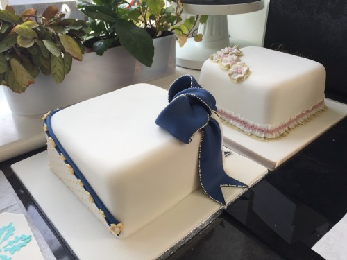 We covered our square cake in sugar paste. We also had a go at using various moulds for sugar paste, making bows, frills, crimping and other techniques.