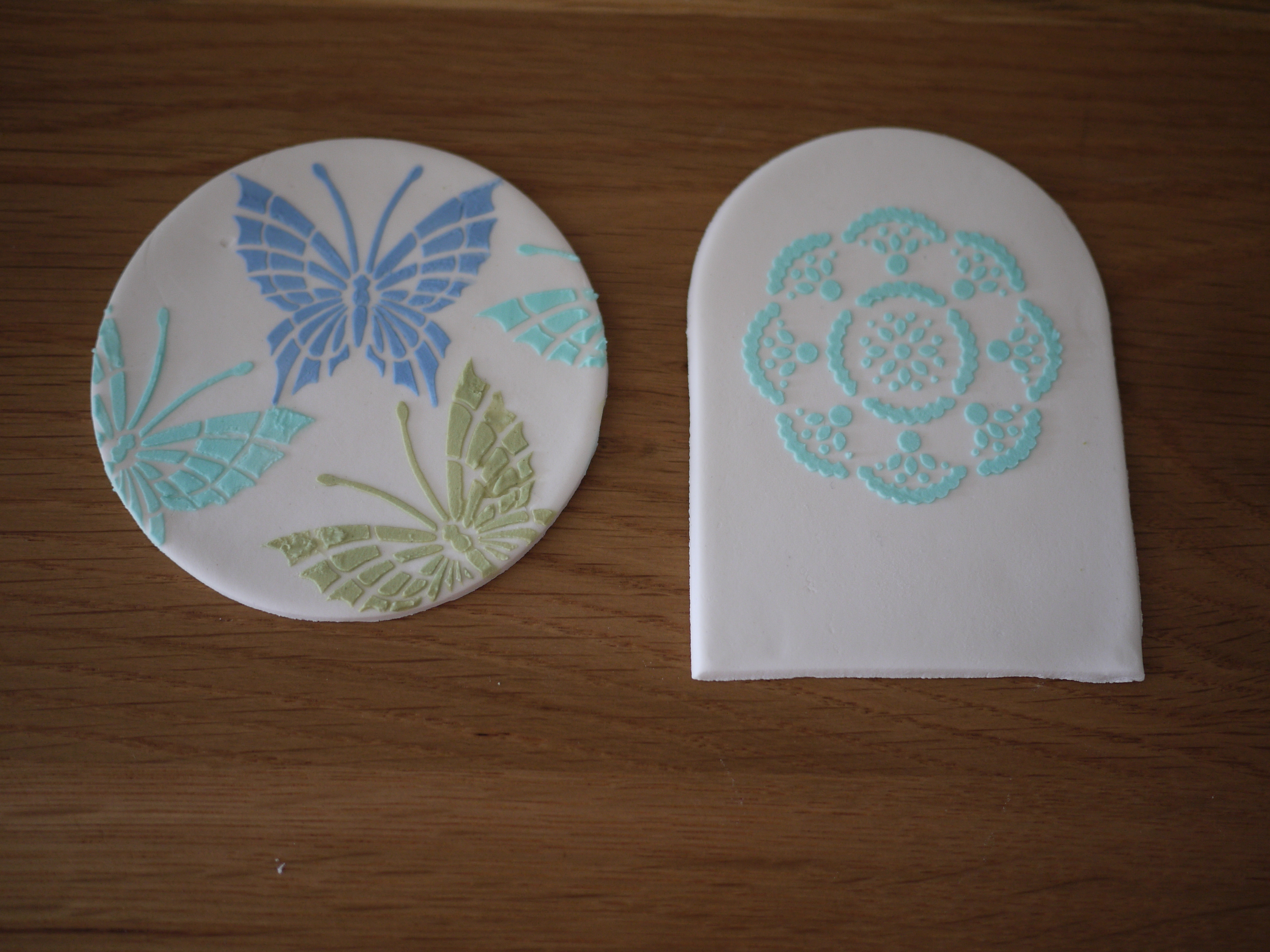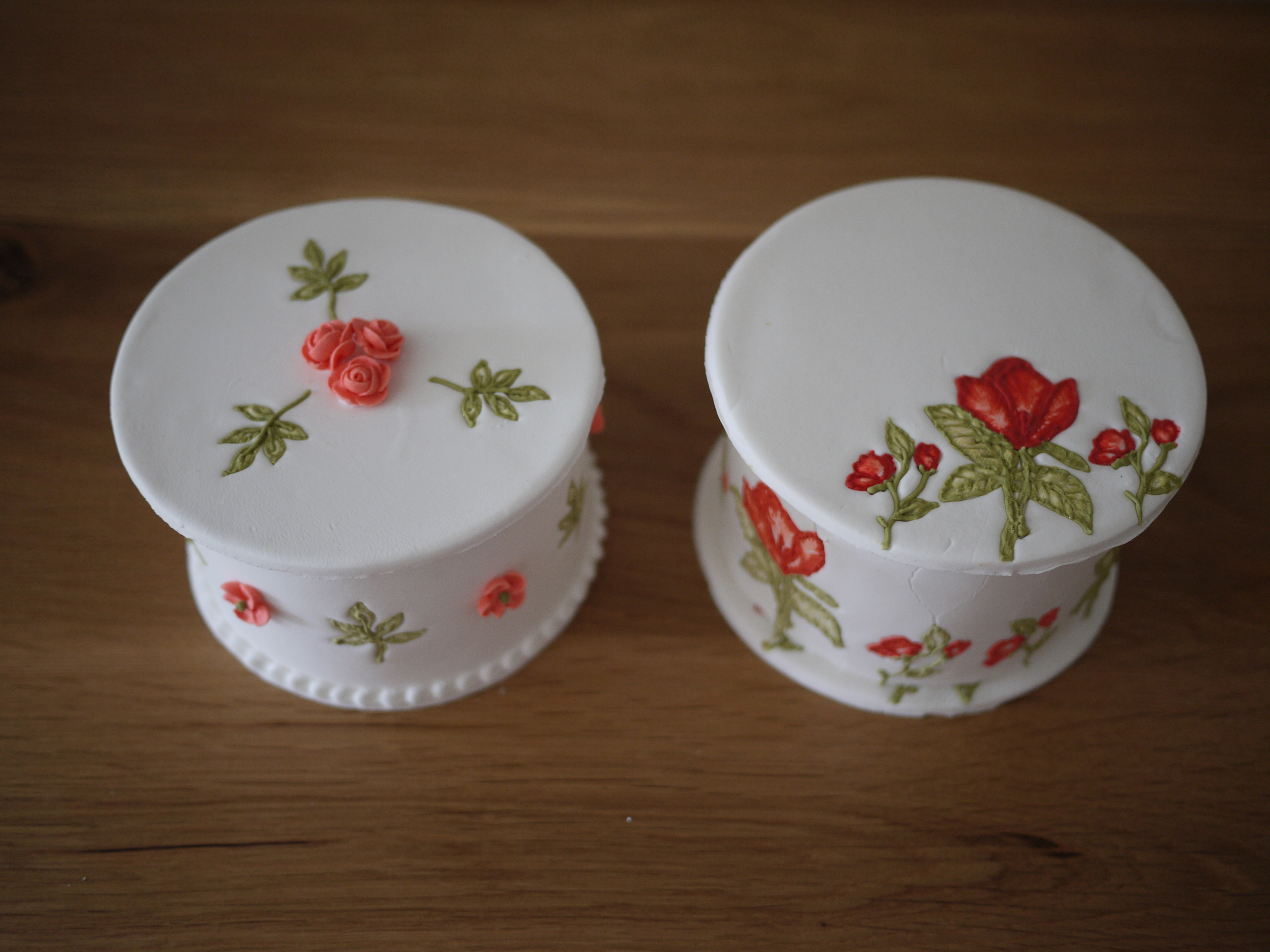 We created round boxes and several plaques which we decorated in the afternoon using royal icing and brush embroidery and also experimented with some royal icing stencilling.