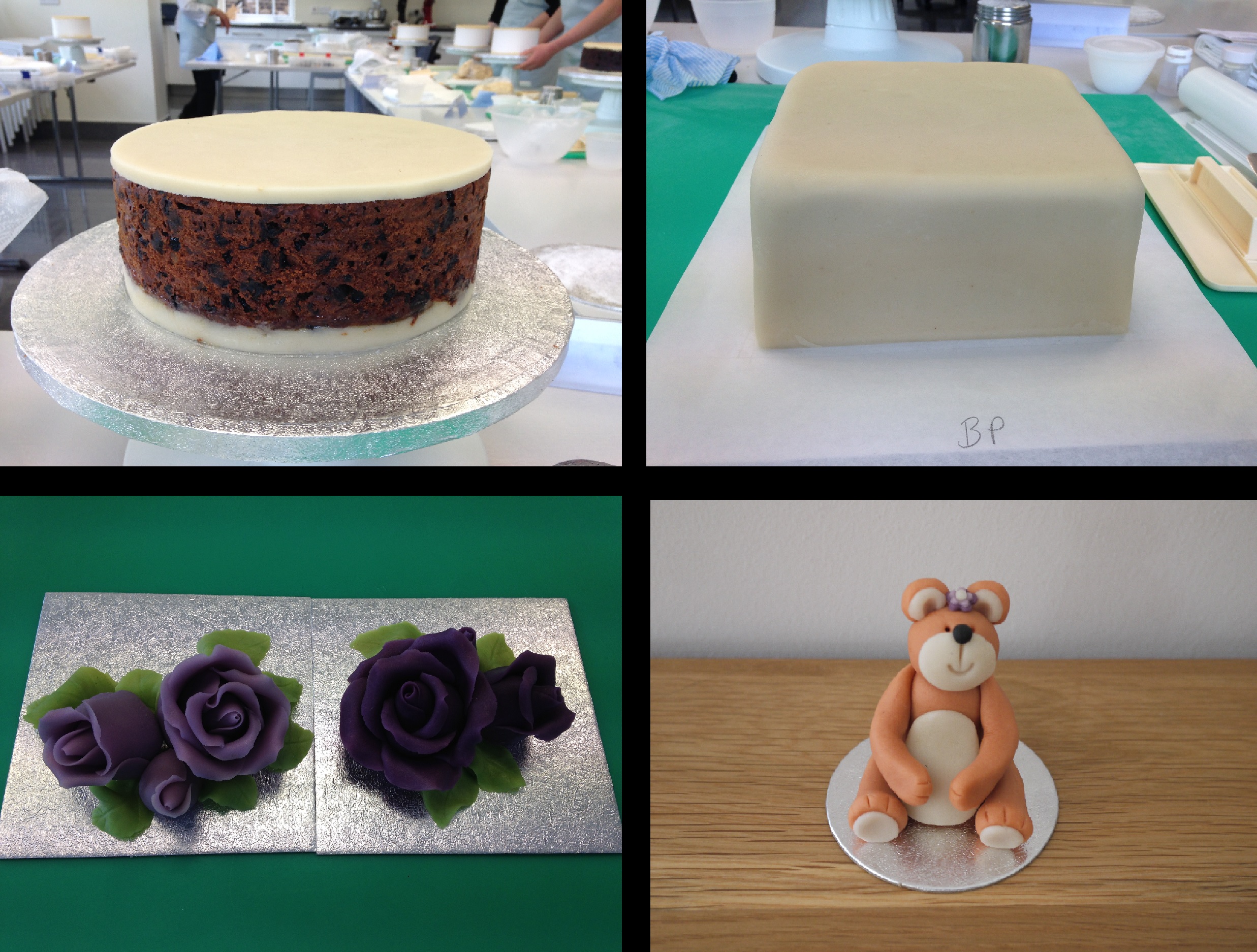 We covered our square cake in sugar paste. We also had a go at using various moulds for sugar paste, making bows, frills, crimping and other techniques.