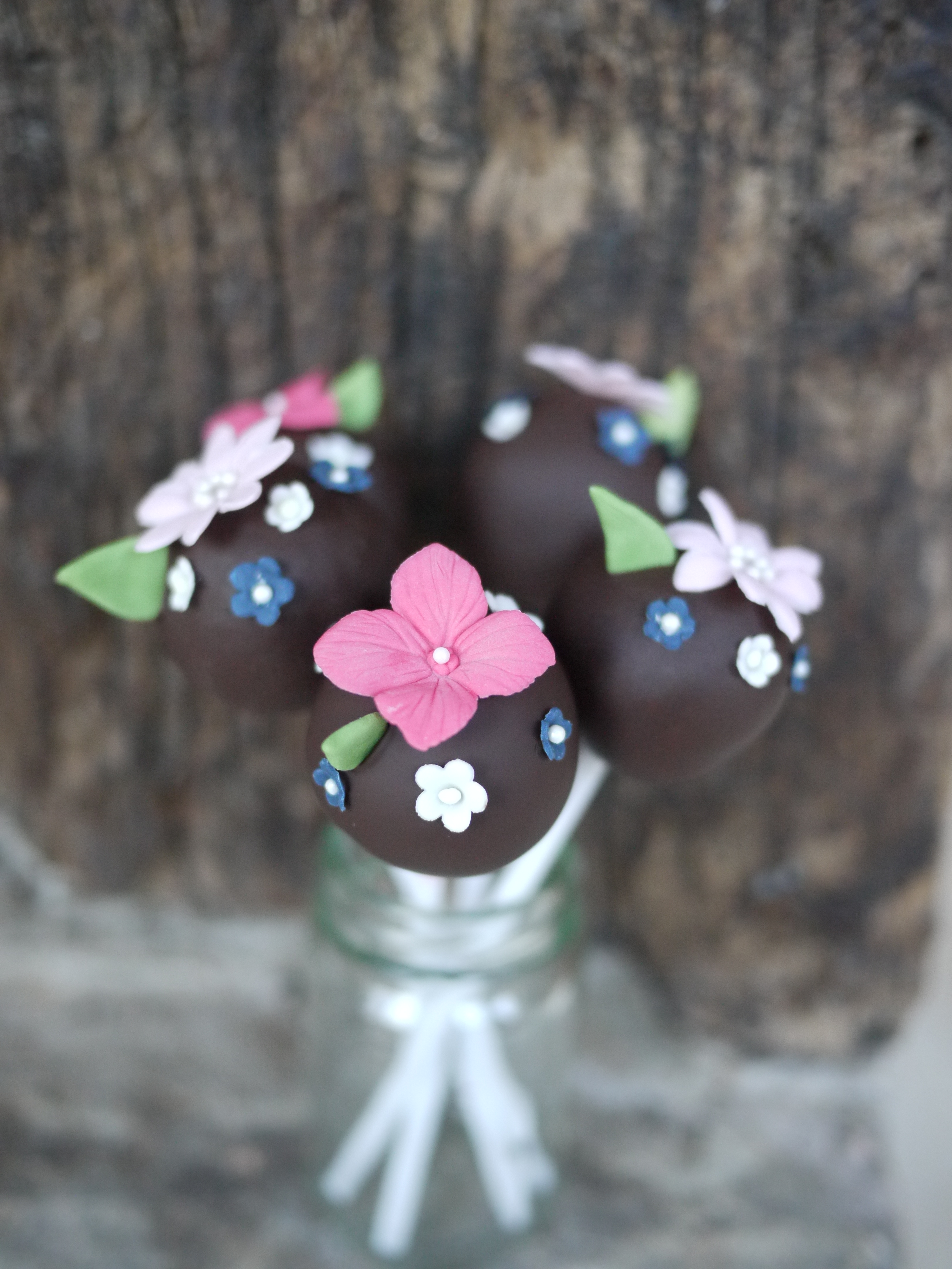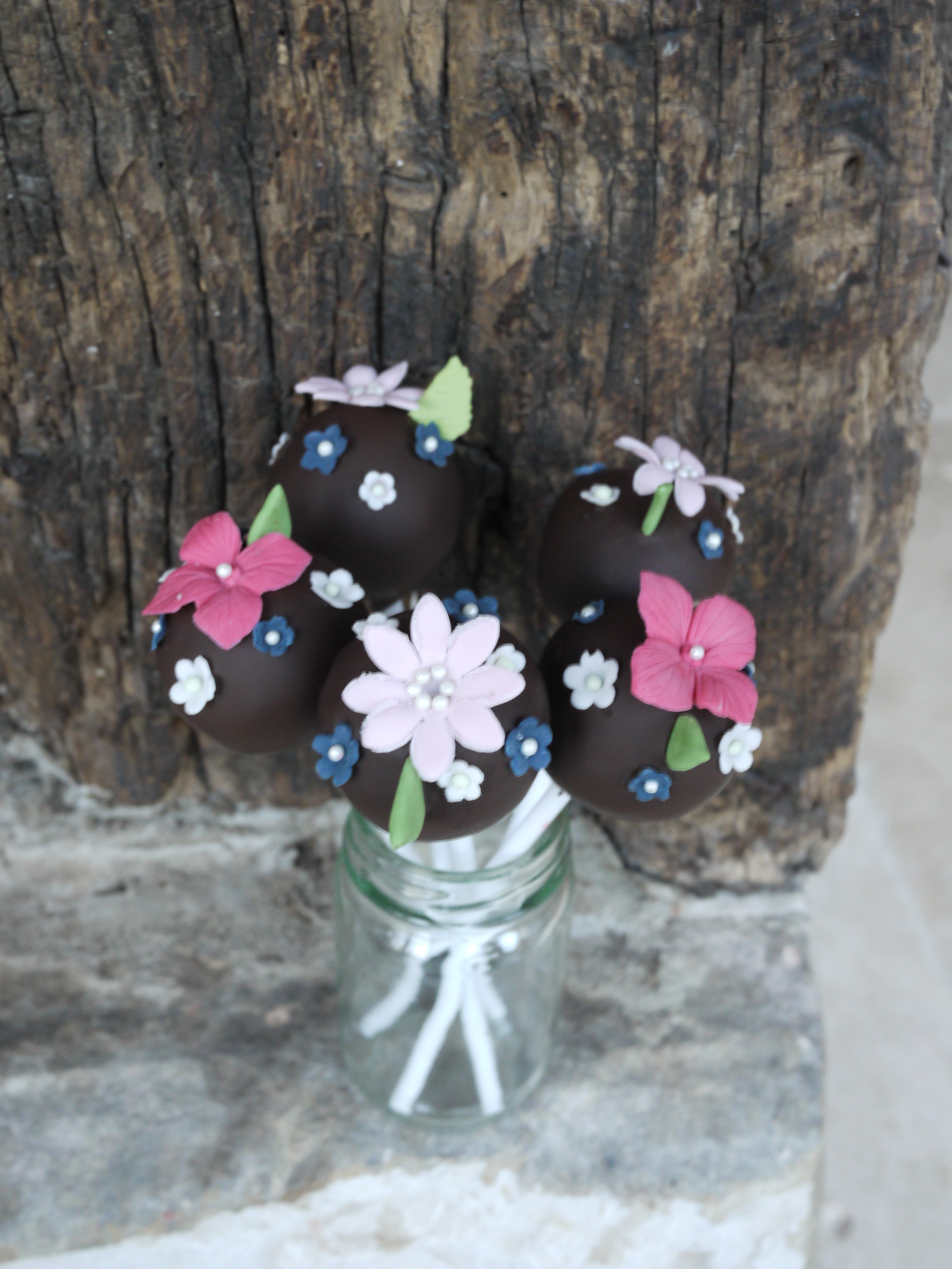 There are loads over very cool designs, but they do take some time to decorate. So I decided that as well as using up the cake pops I would decorate them with left over cake decorations – such as mini flowers that I have left over from various wedding and Birthday cakes.