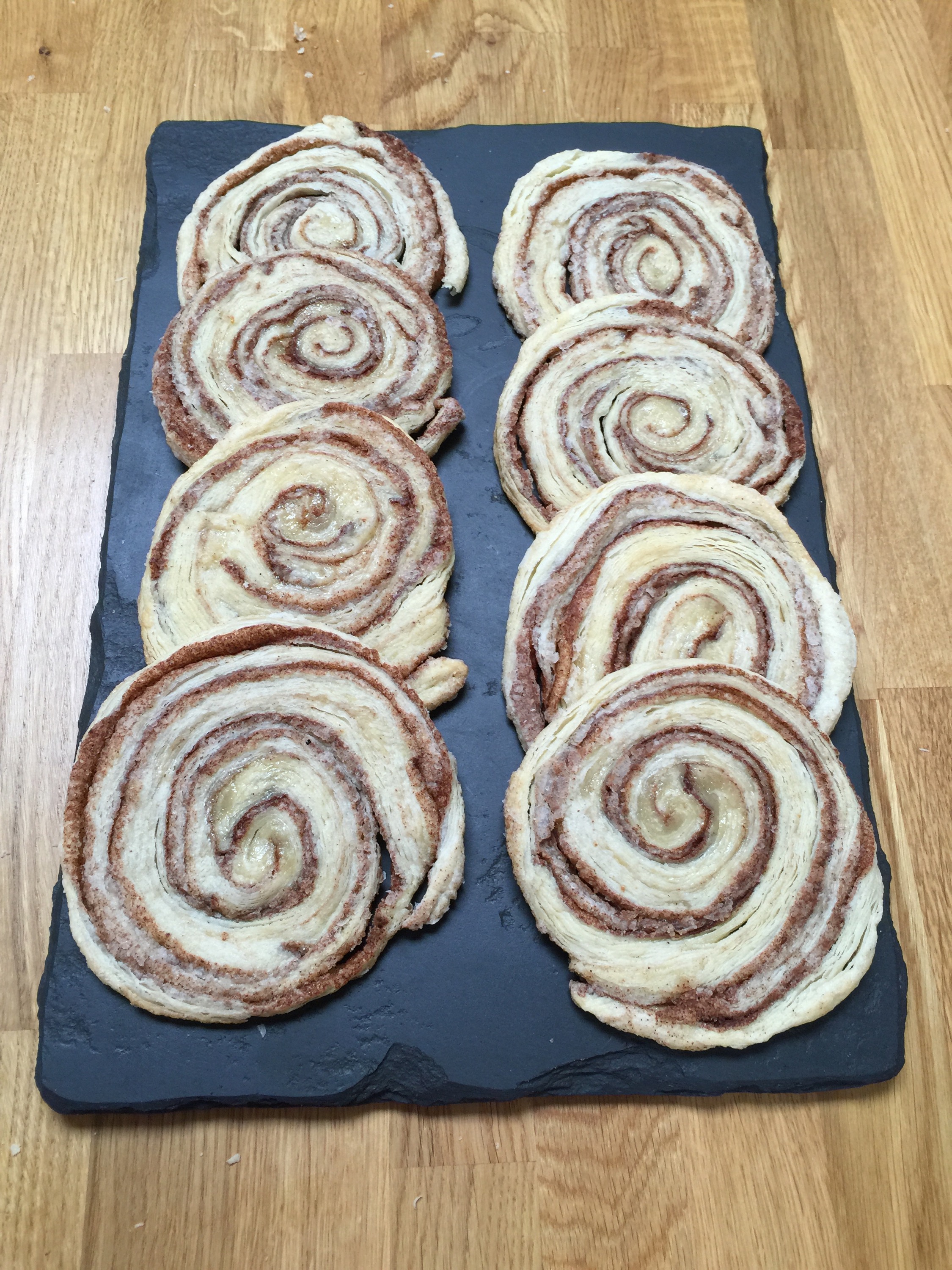I had one slight disaster – after I’d put the filling in and done a “book turn” I went to turn it around so that I could roll it to the right size and as I did half the cinnamon sugar fell out of one of the ends! Luckily though they still seem to have enough of a cinnamon flavour.