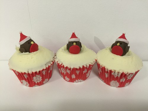 Last year before Christmas I made some cute little penguins to go on top of cupcakes. They were pretty quick to make so given I only had an hour left before I wanted to go to bed last night, and I had 11 undecorated cupcakes, I decided to try making some robins in the same way!