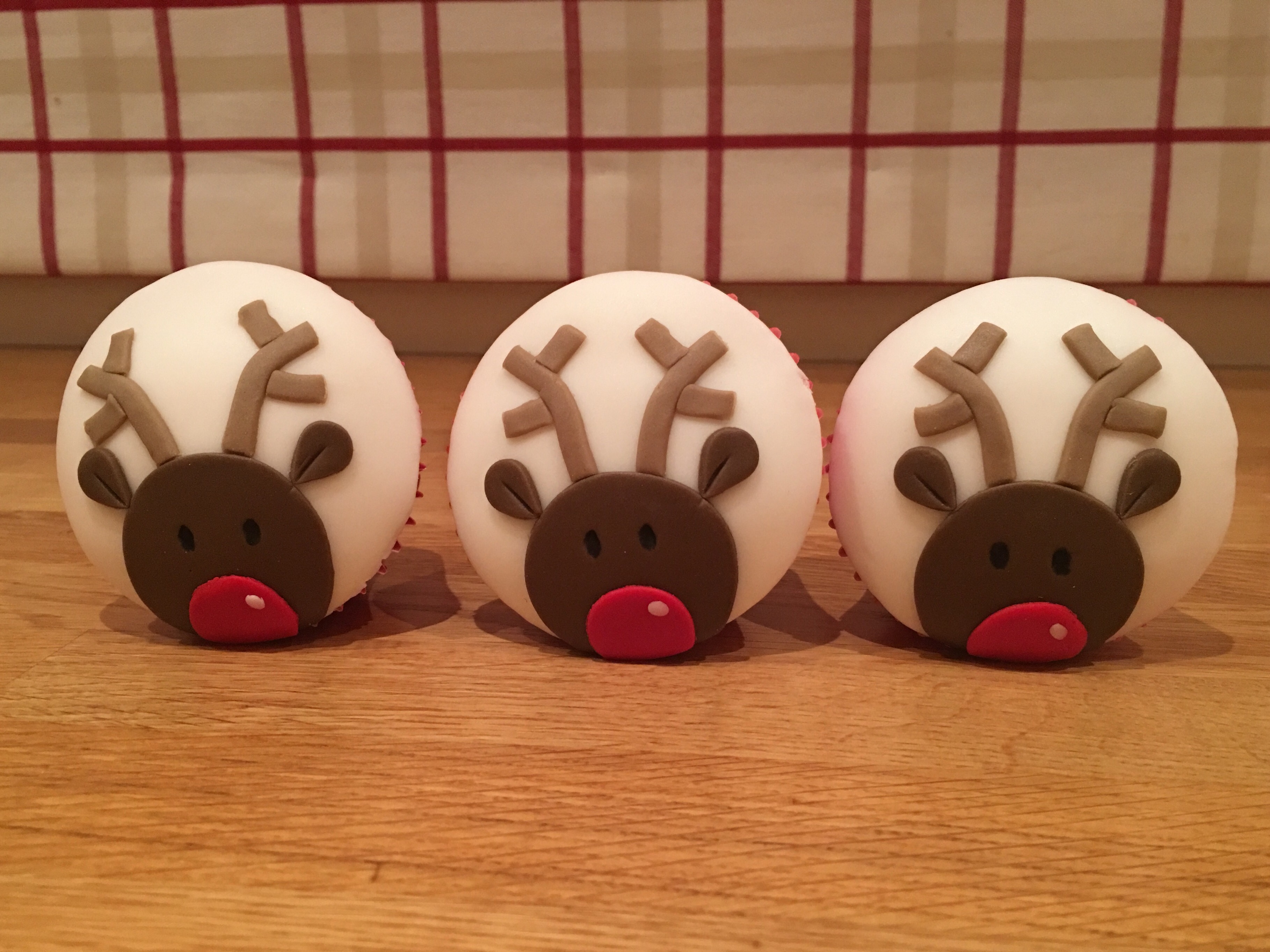 A couple of weeks ago I made some cakes to take down to the Leeds office when I went for the day. Given it was December I decided that I should make something Christmassy. I hadn’t been food shopping so I was limited with what flavour I could make so just went with vanilla. The decoration was an easy choice – I made these cakes last year and really wanted to put them on the blog but never got round to taking photos.