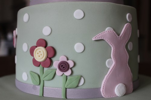 The cake Becky found had an elephant on but since Emily loves bunnies Becky asked me to make a bunny instead. Emily seemed to be pleased with it and kept pointing at it and saying “bunny”. She also seems to enjoy the cake!