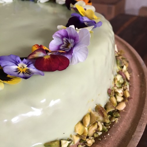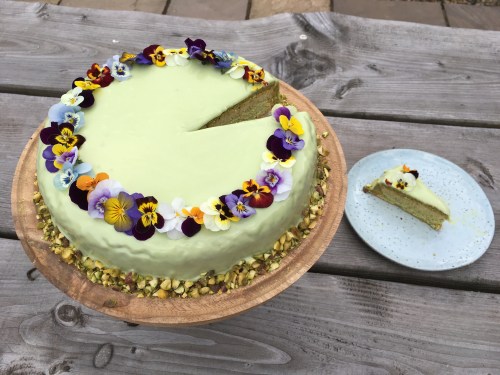 Before I watched last weeks episode of The Great British Bake Off I was worried that the technical challenge was going to be a bit strange – I’d seen the trailer with a bright green purée! However, after hearing what was in the cake I was excited to make it since I love pistachios.