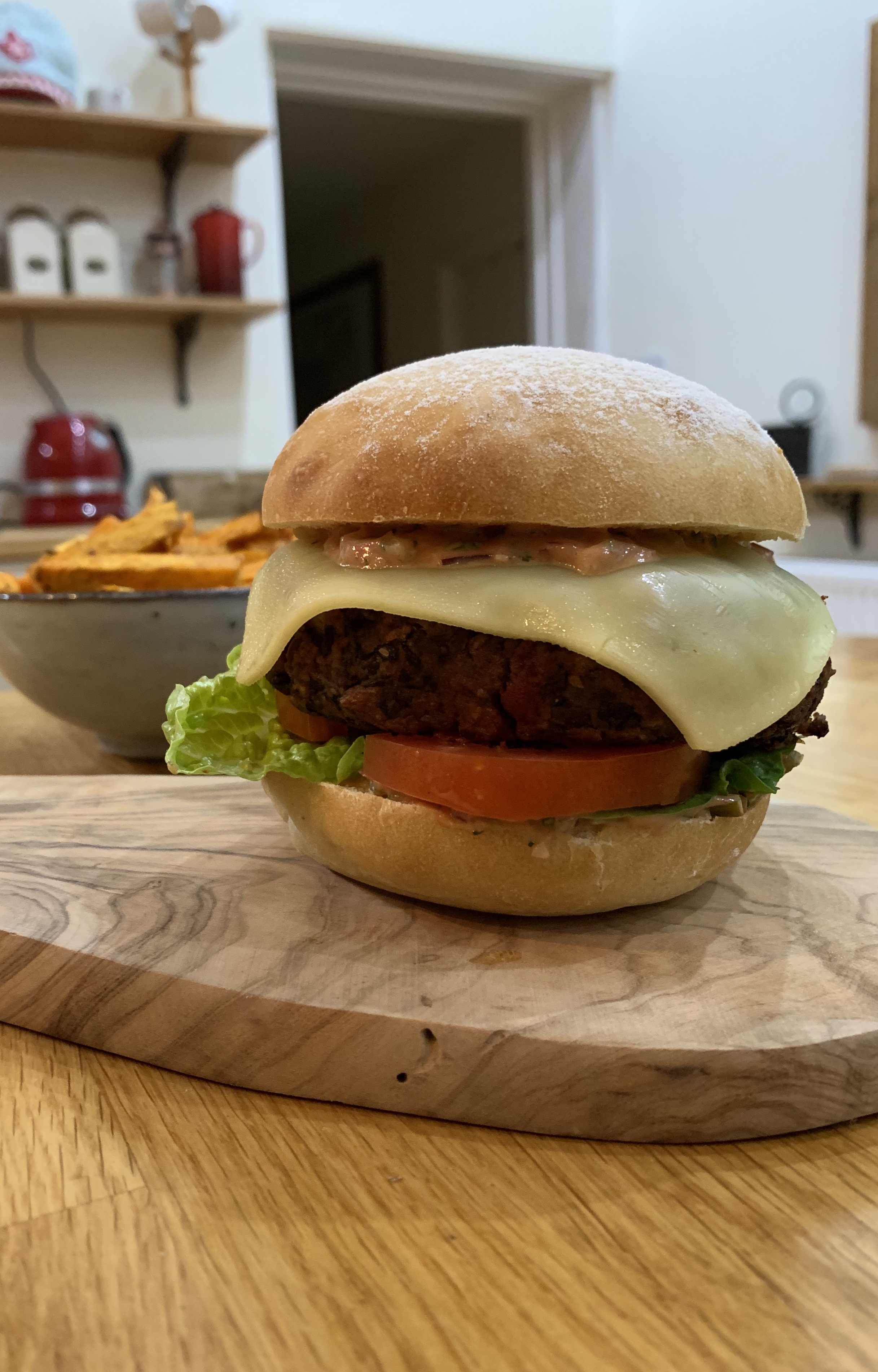 I decided to make the burgers as well (although I only assembled one for my dinner – I froze the rest). The bread rolls were really soft and the spicy bean burgers were really tasty. I decided to make some sweet potato fries to go with it too – it was a good dinner and I’m looking forward to eating the rest of them soon!