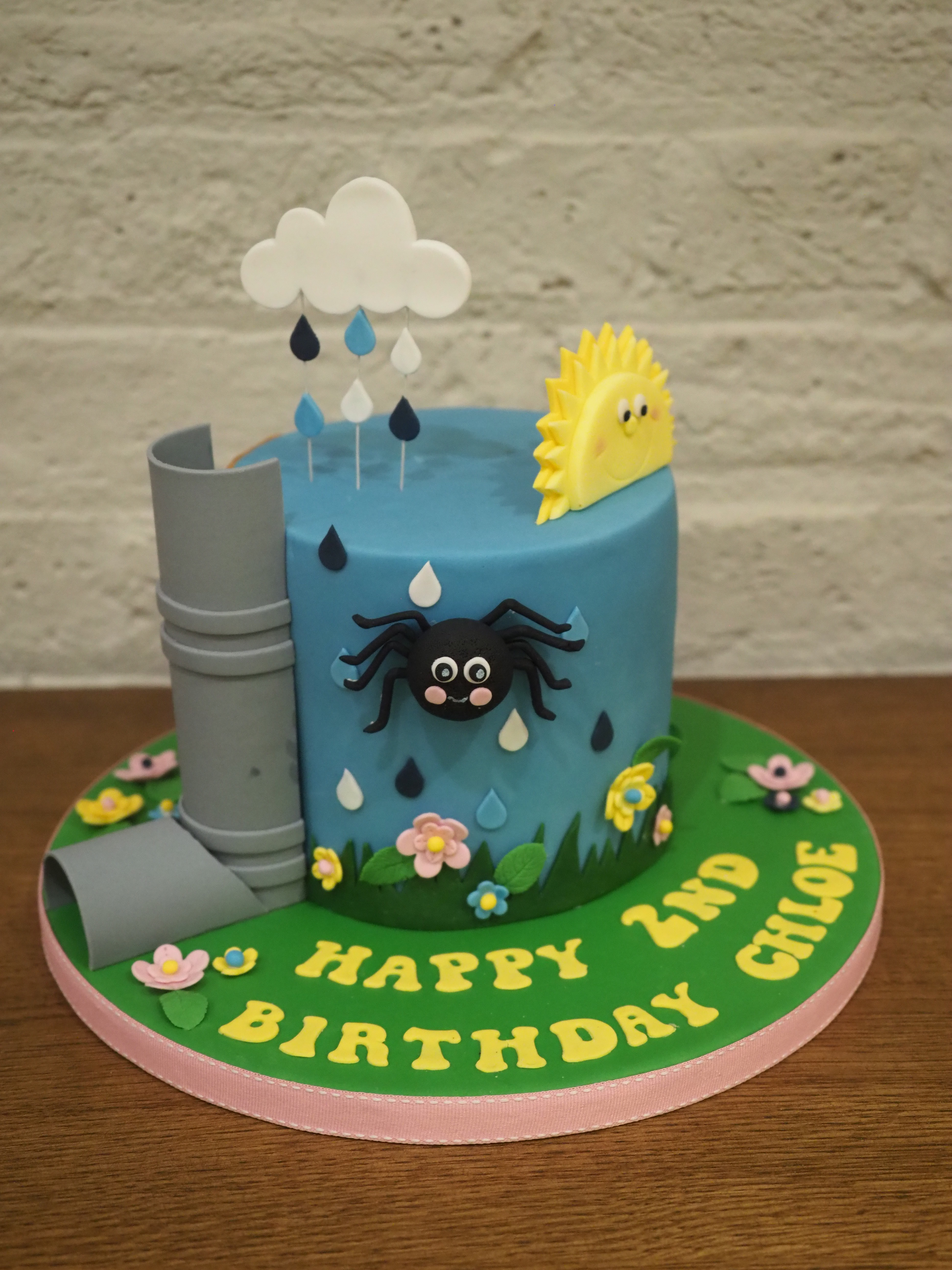 When it was Emily’s second Birthday I made her an Old MacDonald cake as it was her favourite nursery rhyme at the time. So for Chloe’s second Birthday I thought I would do the same and one of her favourites is Incy Wincy Spider. Click here to see this cute cake.