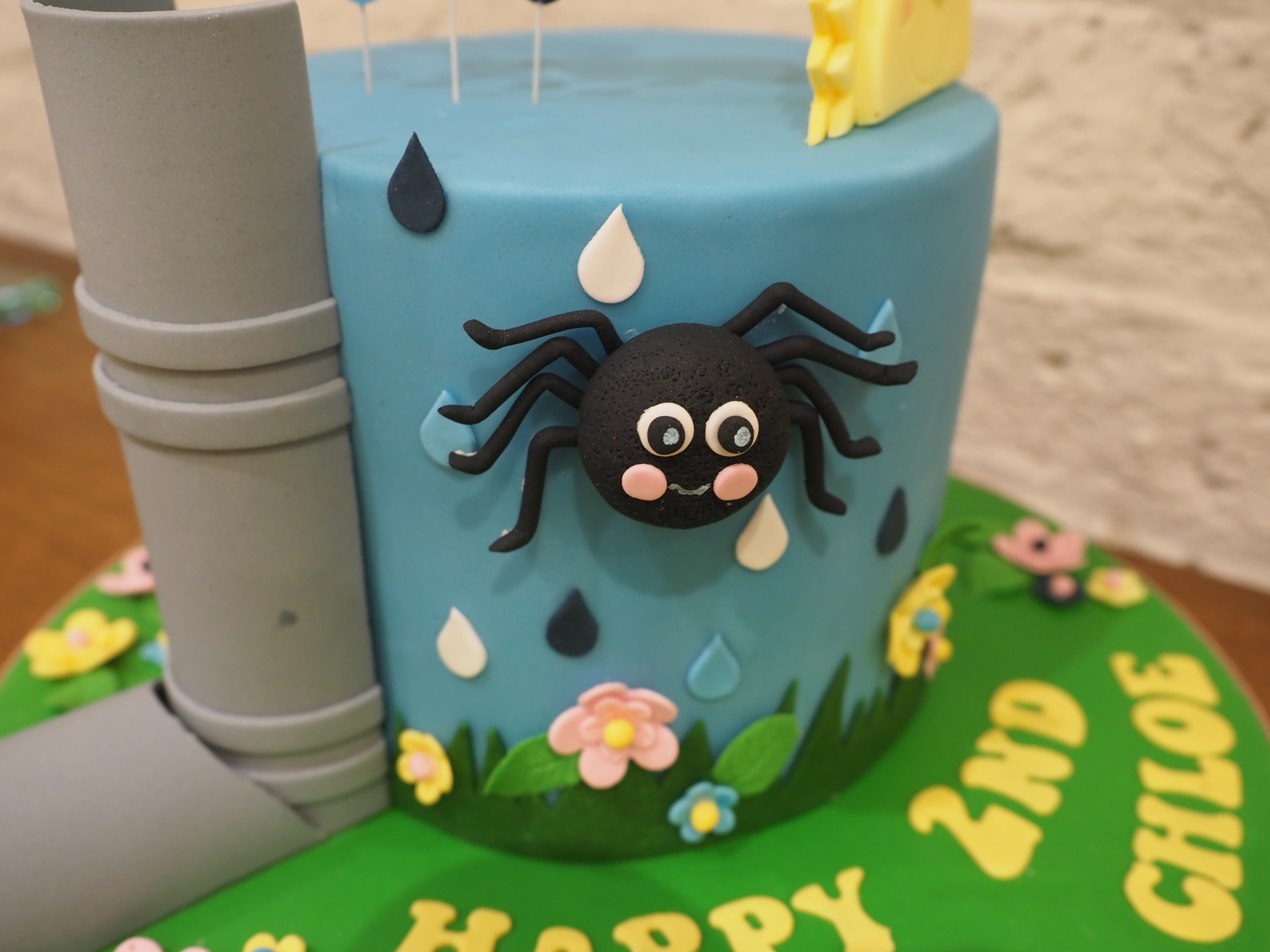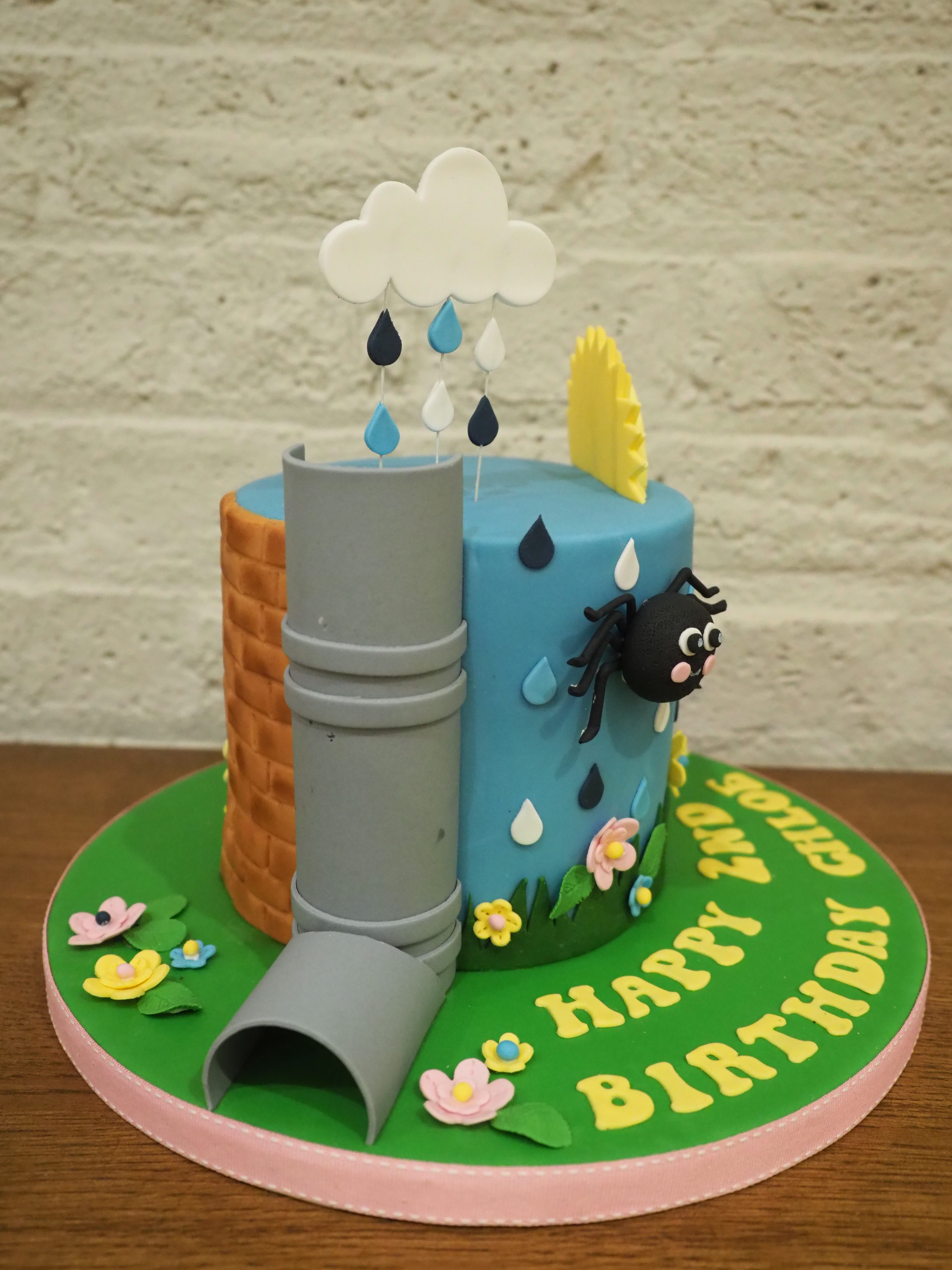 When it was Emily’s second Birthday I made her an Old MacDonald cake as it was her favourite nursery rhyme at the time. So for Chloe’s second Birthday I thought I would do the same and one of her favourites is Incy Wincy Spider. Click here to see this cute cake.