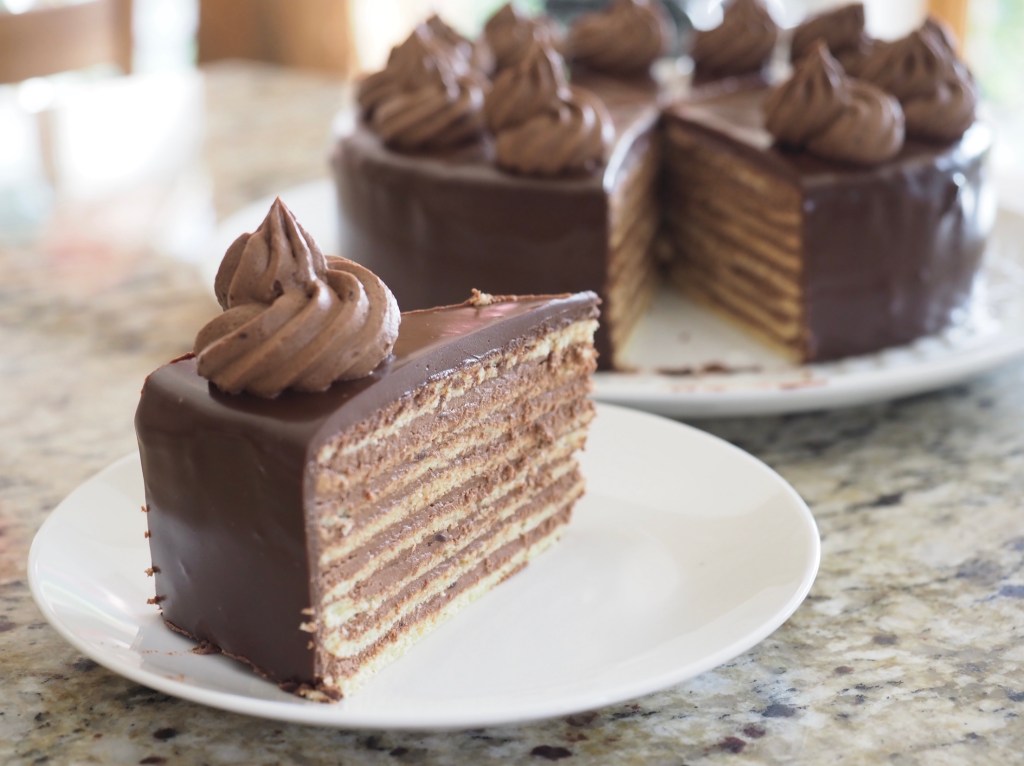I assembled the sponge with the custard buttercream and left it in the tin over night to chill as I ran out of time in the evening to finish it. Then did the crumb coat and ganache the next morning. I also didn’t have enough time to make the crowns, which Emily was a bit disappointed with and told me in her best Paul Hollywood impression that I would have come second in the challenge as the crowns were missing! We all really enjoyed eating it, it was super chocolatey and smooth, we’ll definitely be making this again when we have time!