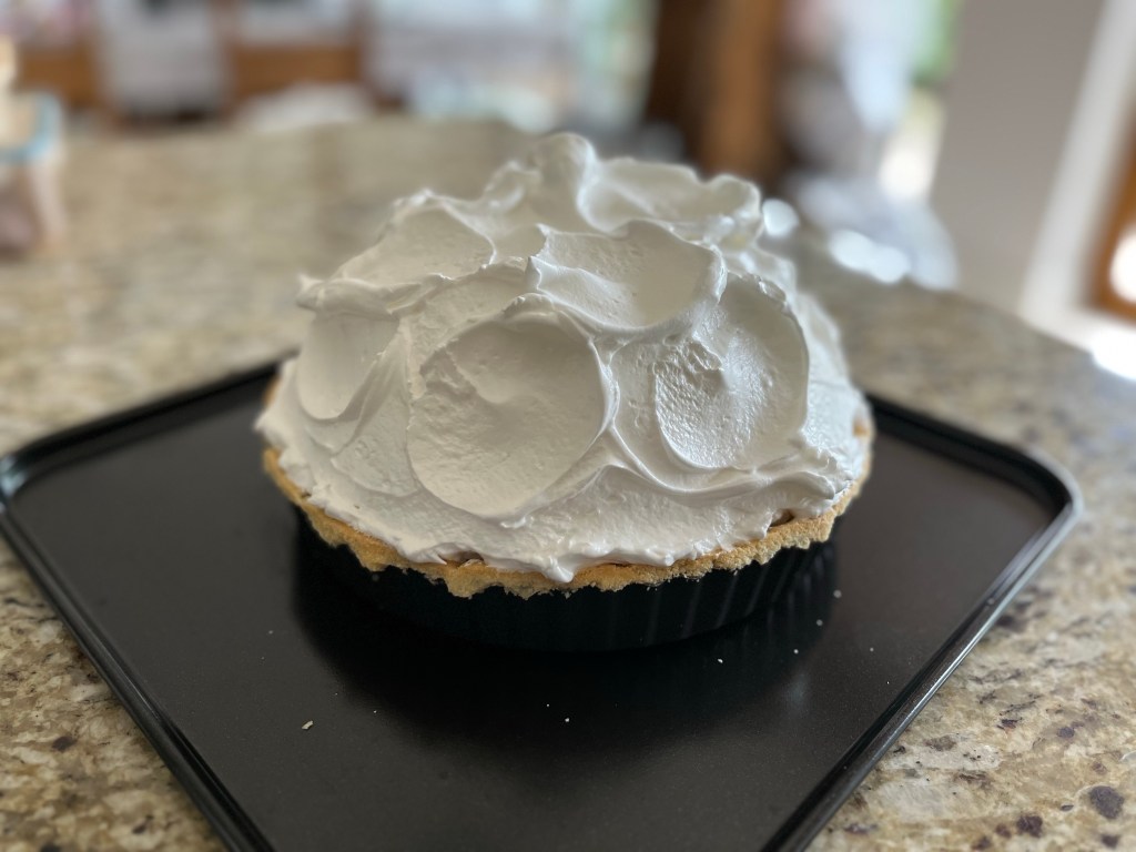 It didn’t say which sized eggs to use, I had large eggs and it actually made far to much meringue! I used as much as I thought it needed and then piped the rest as meringues and baked them separately. We went over to our friends for a Sunday roast and I bought the lemon meringue pie along for pudding, it went down pretty well! You can’t beat a traditional pudding!