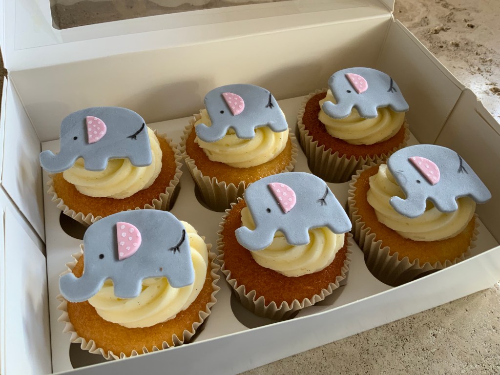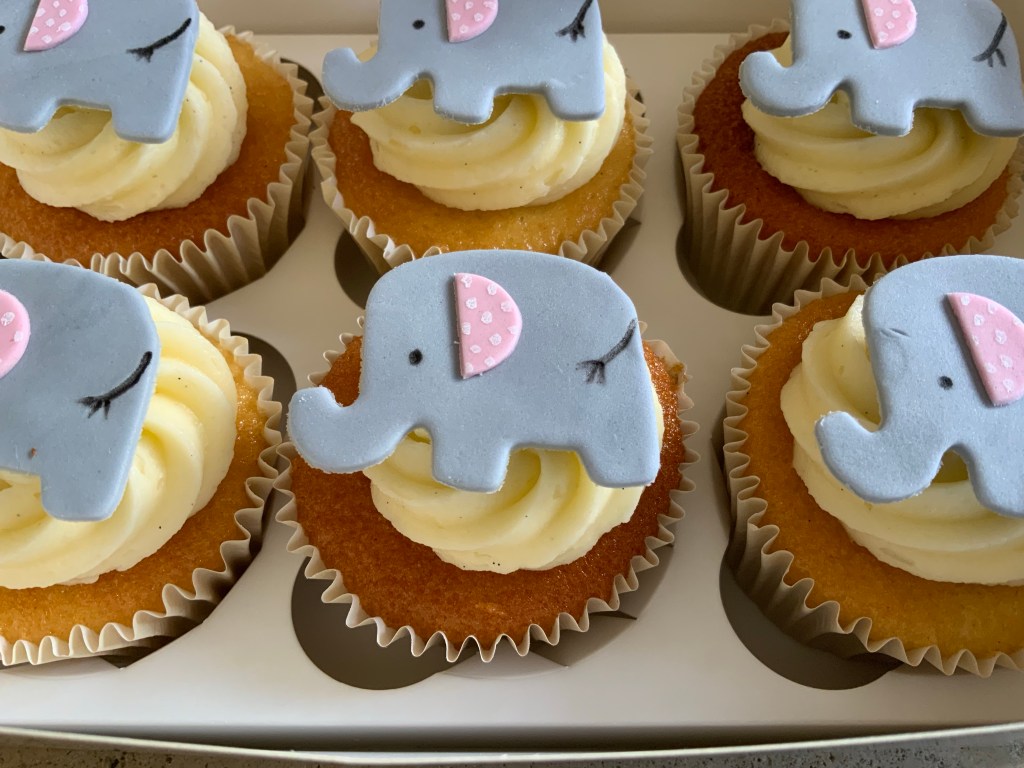 I nearly always end up giving people cupcakes or homemade goodies as presents. I quite often make a big batch of cupcakes and freeze them if I know I have things coming up where I might need to take a gift. Then I will make 6 or 12 decorations specifically for the event/friend. I love creating personal decorations. Click here to see some more pics of these cute little elephant cupcakes.