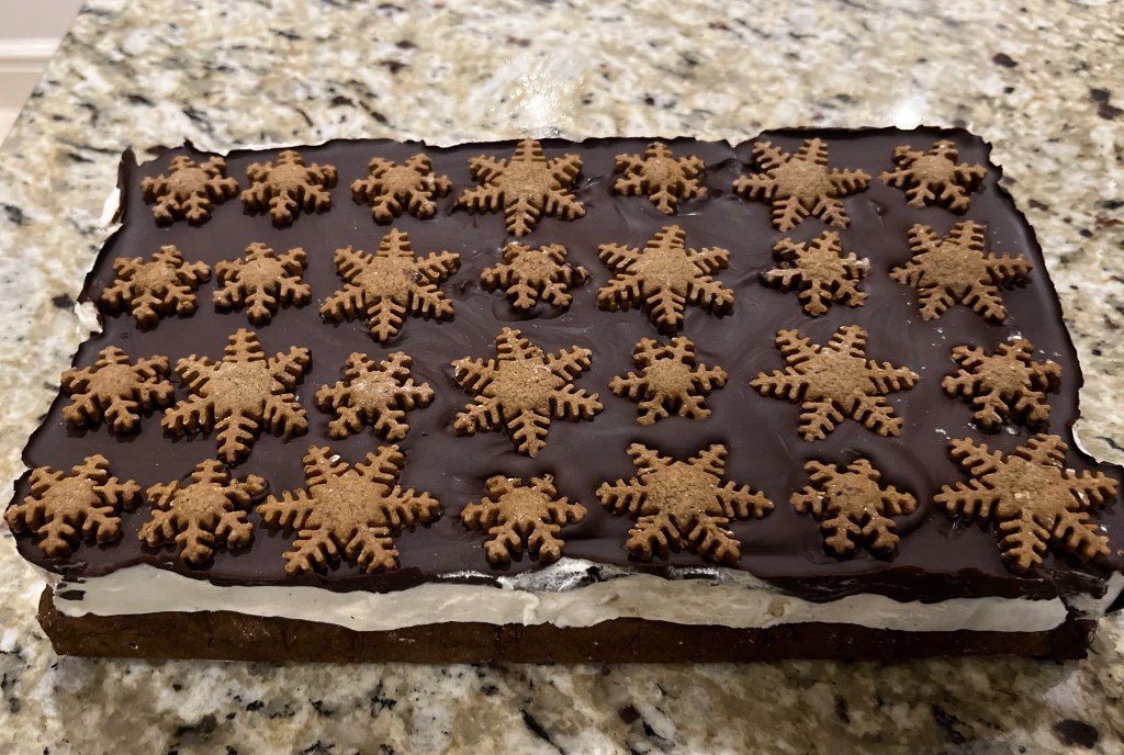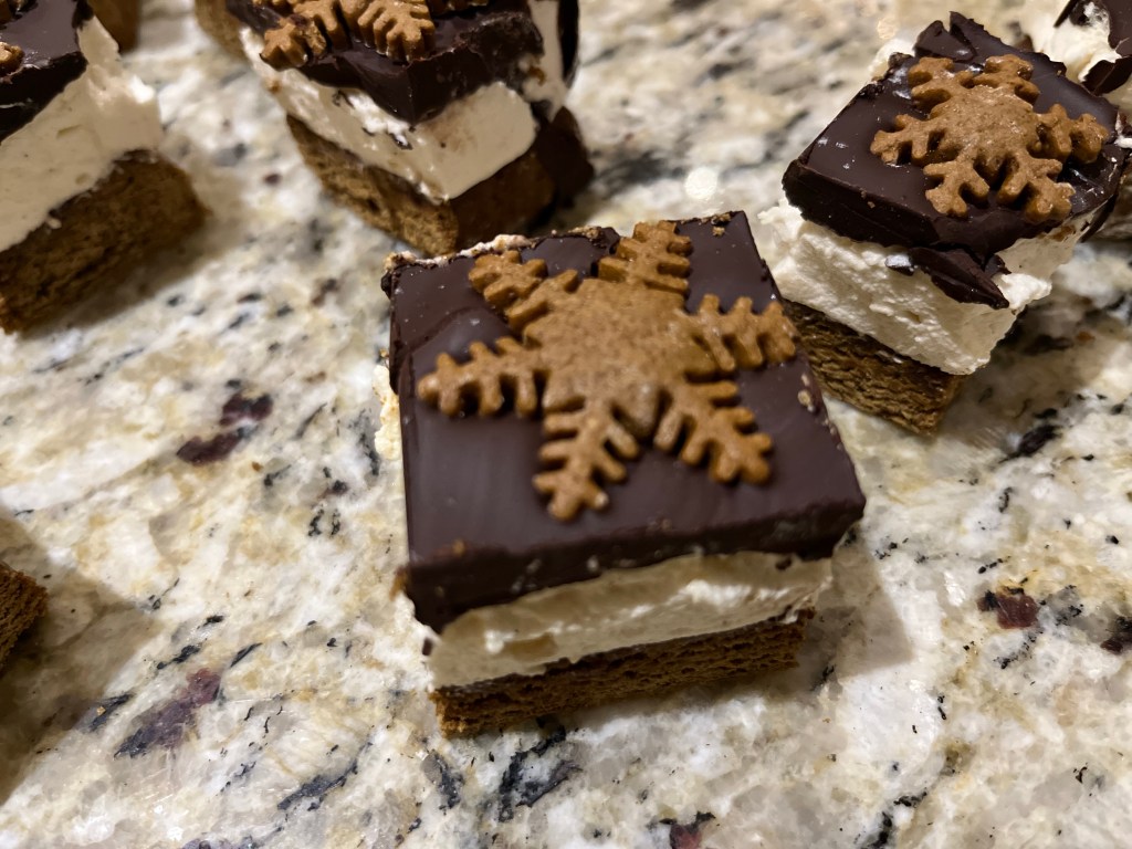 The gingerbread flavour was lovely, slightly darker than the usual recipe I use, but still tastes very good. I wasn’t sure how many snowflakes I would need when I made them, next time I would use all small ones or all big ones and make sure that I can slice it without the edges getting in the way as trying to cut through the ends of the snowflakes makes the chocolate crack. But they look and taste great, another scrummy Christmas treat!