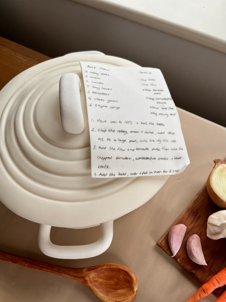 I used an edible pen to write the beef stew recipe onto the dried icing before using some edible glue to secure it in pace on top of the lid. We had a wonderful few days celebrating Mum’s Birthday, with a surprise visit from Em and Mark and then a surprise family lunch at ours followed by the cake! Happy 70th Birthday Mum!