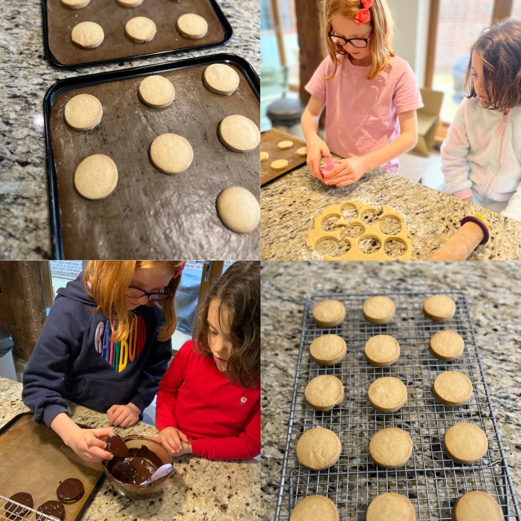 The girls helped measure out the ingredients and make the biscuit dough as well as the ingredients for the peppermint cream filling and of course the chocolate for coating them. The recipe can be found here.