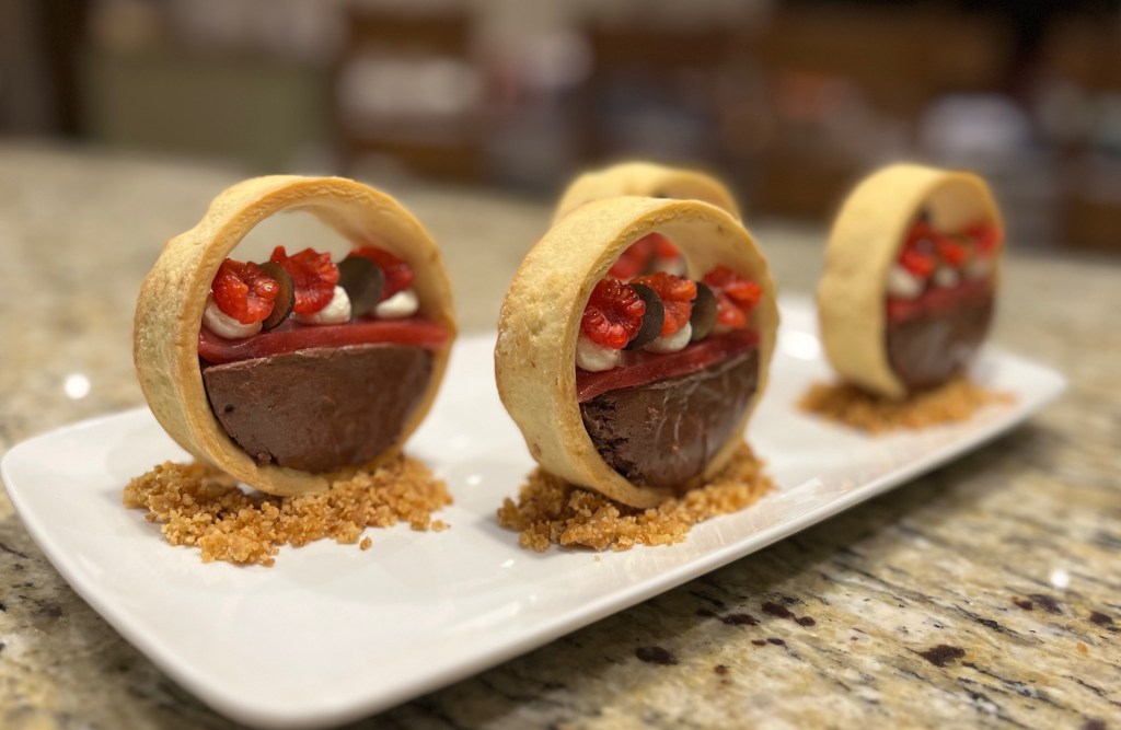 I’d love to have more time to try some patisserie stuff, I love watching Bake Off the Professionals and seeing some of the amazing patisserie things they do. It’s all so precise and they have lots of clever equipment too! These deserts were perfectly timed with Rich’s Birthday, so they made a tasty treat for pudding on Saturday night. Click here to see how I got on.