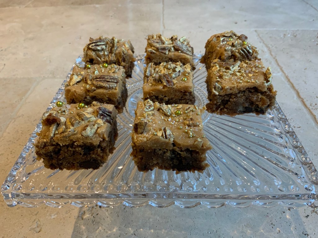 1. Pre heat the oven to 180 C, gas mark 4. Grease and line a 28 x 18cm baking tin with baking parchment making sure that the paper come up high enough around the sides.